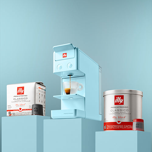 Aparat illy Y3.3 i Zi me kapsula (2 Classico + 1 Intenso + 1 Lungo + 1 Decaffeinato)